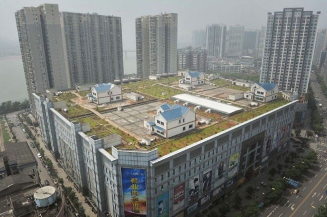 Ιδιωτικά σπίτια στην κορυφή ενός οκταώροφου εμπορικού κέντρου, Zhouzhou, Κίνα