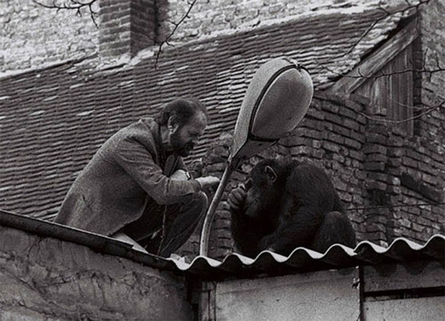 Ο διευθυντής του ζωολογικού κήπου του Βελιγραδίου προσπαθεί να πείσει τον Sammy τον χιμπατζή να επιστρέψει μετά την απόδραση του, 1988