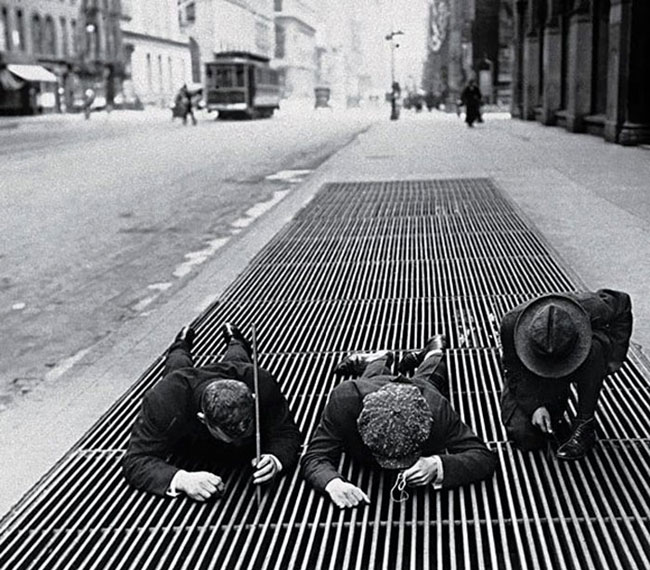 8.Τρία μικρά αγόρια ψαρεύουν για νομίσματα την εποχή της Μεγάλης Ύφεσης, Νέα Υόρκη 1930.