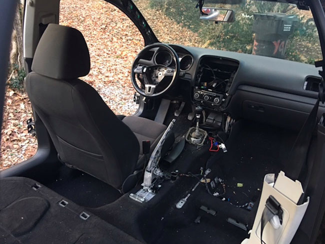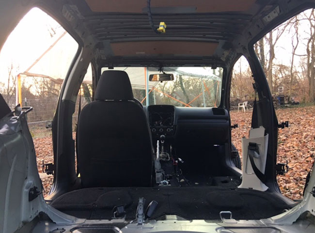Ο αμερικάνος Joe Mayer, όπως ονομάζεται, έχει “γδύσει” εντελώς το αυτοκίνητο αφαιρώντας πόρτες, πορτμπαγκάζ, προφυλακτήρες, καπό, φτερά, το κάθισμα του συνοδηγού, τα καθίσματα των πίσω επιβατών, τους αερόσακους, τους καθρέπτες, το κάλυμμα του επιλογέα των ταχυτήτων, όλη την κεντρική κονσόλα, την επένδυση της οροφής και του χώρου του πορτμπαγκάζ, την ρεζέρβα και τους αεραγωγούς, αφήνοντας μόνο το κάθισμα του οδηγού και το τιμόνι στην θέση του.