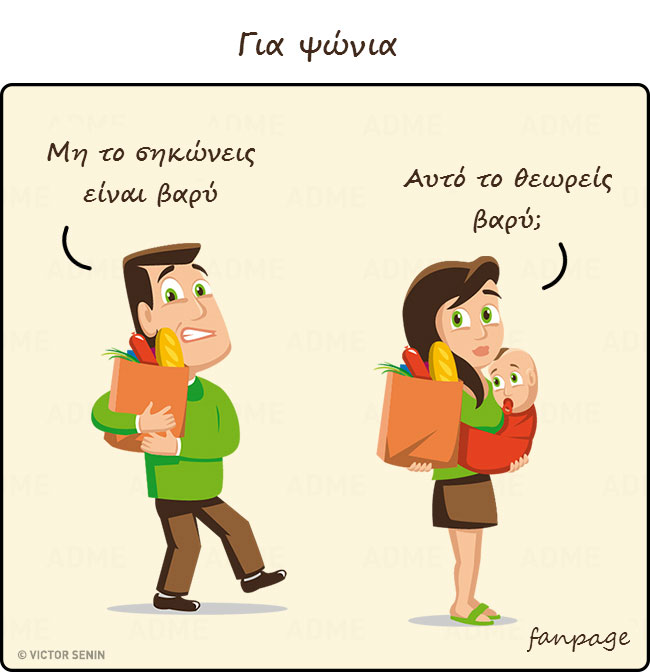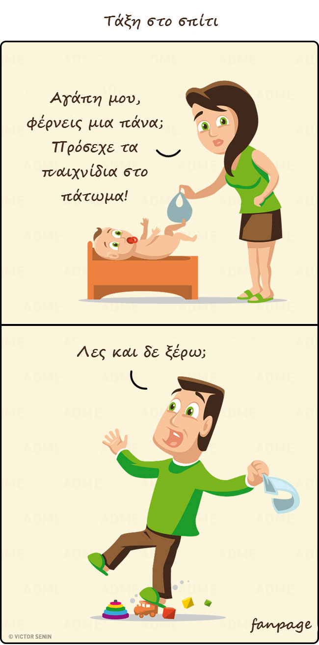 Η γέννηση ενός παιδιού αλλάζει τα πάντα στη ζωή ενός ζευγαριού, και ιδιαίτερα το βάρος της φροντίδας του παιδιού πέφτει στη μητέρα. Μοιραζόμαστε μαζί σας κάποιες καταστάσεις στη ζωή των γονιών με τον ερχομό του παιδιού, που περιέχουν μια δόση χιούμορ! Απολαύστε τις!