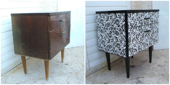 Ένα παλιό κομοδίνο μετατρέπεται σε ένα κομψό ασπρόμαυρο κομοδίνο