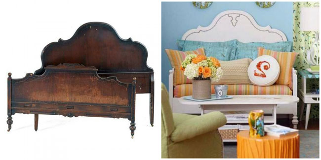 Χρησιμοποιήστε το παλιό κεφαλάρι ενός κρεβατιού για να φτιάξετε έναν μικρό καναπέ