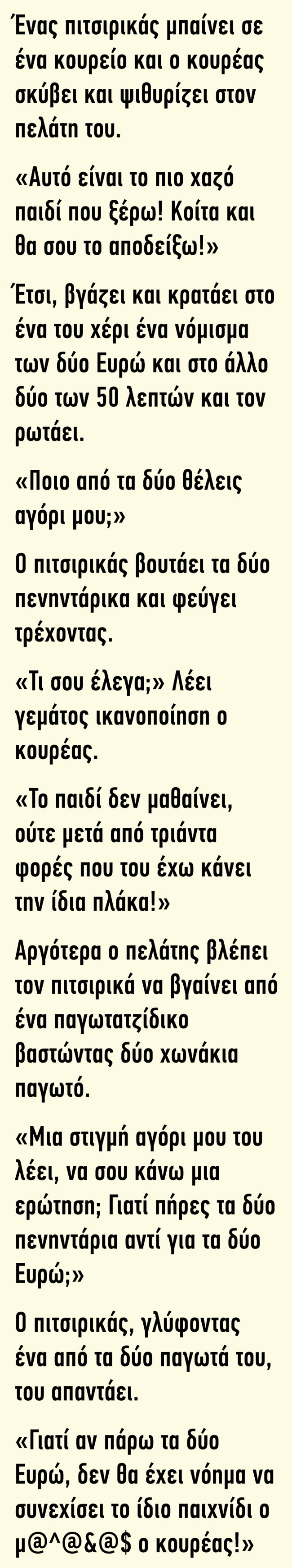 Ένας πιτσιρικάς μπαίνει σε ένα κουρείο και ο κουρέας