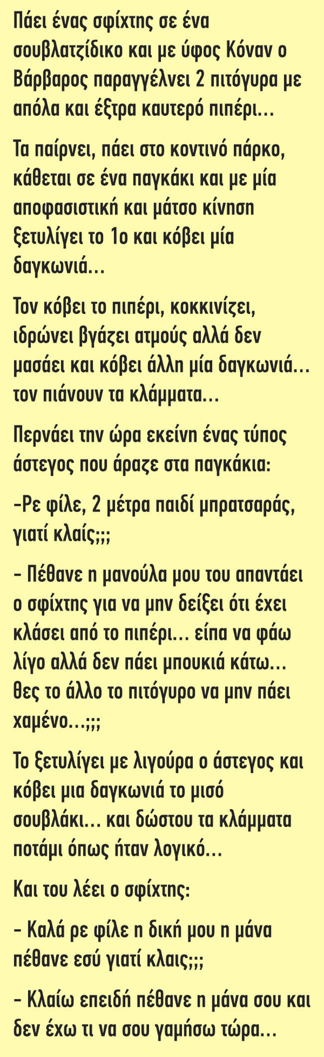 Πάει ένας σφίχτης σε ένα σουβλατζίδικο…