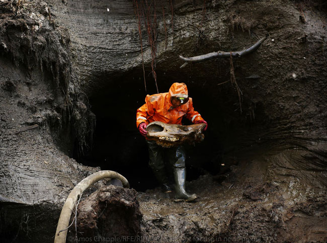 Τα τριχωτά μαμούθ, οι χαμένοι αρκτικοί συγγενείς του σύγχρονου ελέφαντα, πιστεύεται ότι έζησαν στη Σιβηρία περίπου 400.000 χρόνια πριν. Η περιοχή τώρα περιβάλλεται όλο το χρόνο από παγωμένο νερό, ένα παχύ στρώμα πάγου κάτω από το έδαφος, το οποίο έχει συμβάλει στη διατήρηση των βυθισμένων σκελετών των μαμούθ για χιλιετίες.