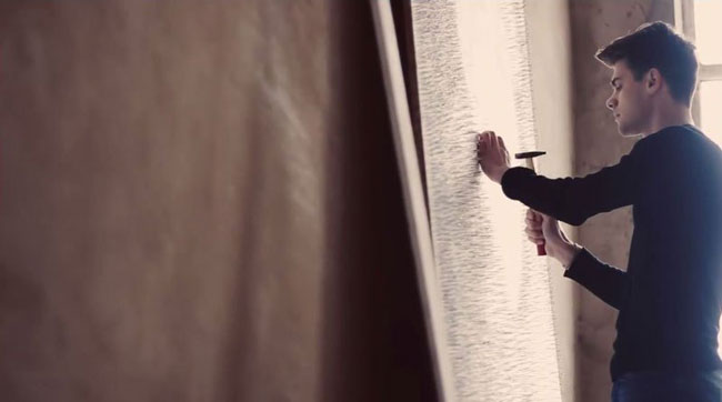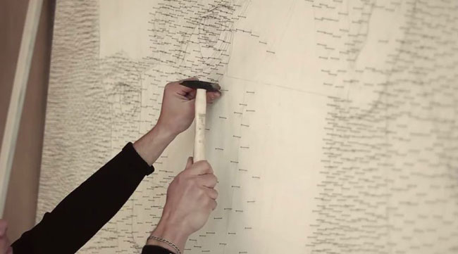 Μέχρι να τελειώσει μέτρησε συνολικά πάνω από 13.000 καρφιά, αλλά ένα πρόσωπο είχε ήδη αρχίσει να σχηματίζεται ύστερα από λίγες ώρες δουλειάς…
