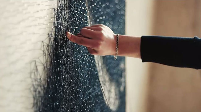 Μόλις τελείωσε με τα καρφιά, άρχισε να δένει ανάμεσά τους την κλωστή με ένα πολύ συγκεκριμένο μοτίβο.