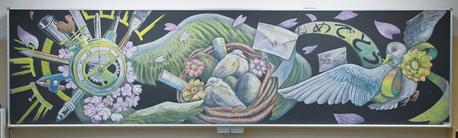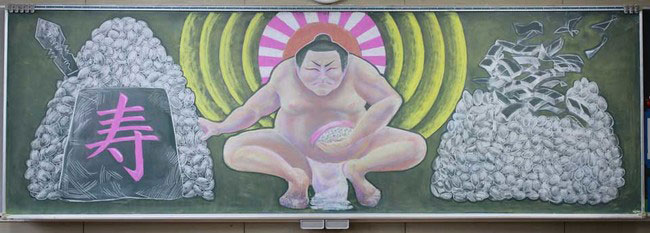 Αυτή η ζωγραφιά είναι από το Kochi Nishi High School. Δείτε τη λεπτομέρεια… Είναι πραγματικά απίστευτο! Η ράβος που ανταλλάσουν οι φιγούρες στο κέντρο συμβολίζουν τη γνώση και τις παραδόσεις που μεταλαμπαδεύονται στα νεότερα μέλη της κοινωνίας.