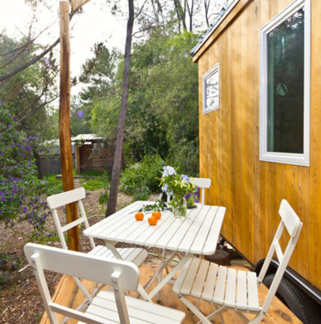 Έχοντας στη διάθεσή της 40.000 δολάρια και το όνειρο μιας πιο απλής ζωής, η σχεδιάστρια από την Καλιφόρνια έχτισε το σπίτι των ονείρων της πάνω σε ρόδες. «Δεν είναι προσωρινό σπίτι«, λέει η ίδια. «Δεν θα το αποχωριστώ ποτέ«. Μάλιστα, αναφέρει ότι αποτελεί εξαιρετικό μέρος για να περνάει χρόνο μαζί με τους φίλους της. «Ποτέ δεν είχα διασκεδάσει τόσο πολύ, όσο από τότε που κατασκευάστηκε το μικροσκοπικό σπίτι μου«, προσθέτει.
