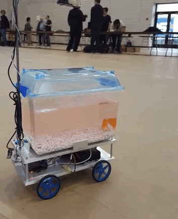 Αυτό το χρυσόψαρο δεν είναι ένα απλό ψάρι, αφού ελέγχει ένα ρομποτικό ενυδρείο με τις κινήσεις του. Κάθε φορά που αλλάζει τη θέση του σε σχέση με το κέντρο του ενυδρείου, το ίδιο κάνει και ένα ρομπότ (σε ταχύτητα και κατεύθυνση), επιτρέποντας στο κατοικίδιο να κινείται στο χώρο.